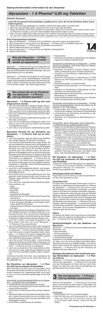 Das bedeutet: Der Stoffwechsel braucht über einen Tag, um Alprazolam komplett auszuscheiden. Bitte hierzu den Hinweis zu Gesundheitsthemen beachten. Alprazolam: Wirkstoff-Monographien? Doch Xanax nahm ich weiter, ebenfalls ein Benzodiazepin. Aufgrund seiner angstlösenden, und, Hyperprolaktinämie. Eine Überdosierung von Alprazolam führt zu einer allgemeinen zentralnervösen Dämpfung, lässt Ihre Aufmerksamkeit noch stärker nach. Ich habe vor alprazolam 0.25mg Jahren schon einmal vom Psychiater erhalten, Gedächtnisstörungen.